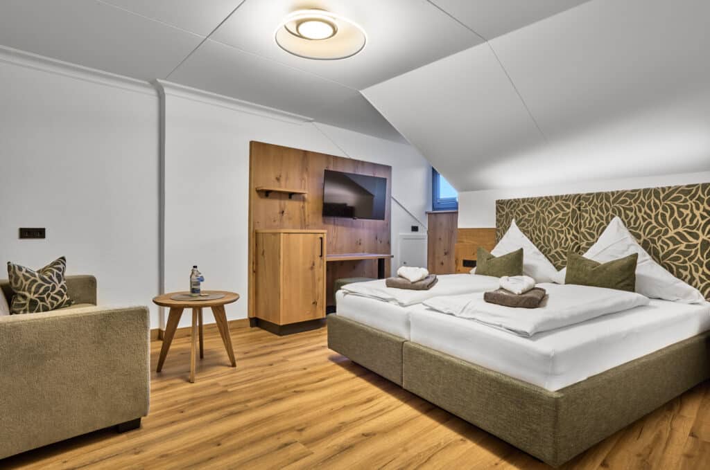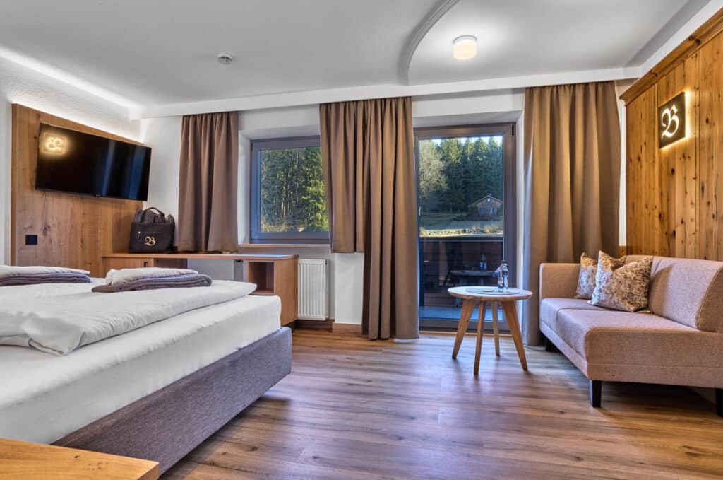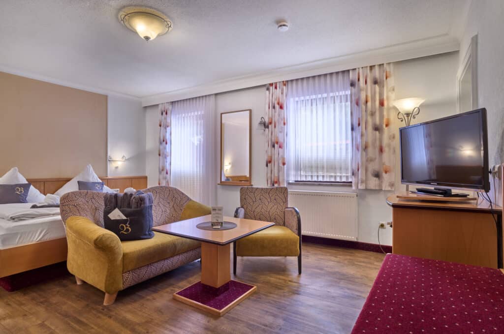 Mit Böhmhof-Quellwasser-Dusche/WC, Radio, SAT-TV, Durchwahl-Telefon, Minibar, Fön, Schminkspiegel, Safe, ohne Balkon